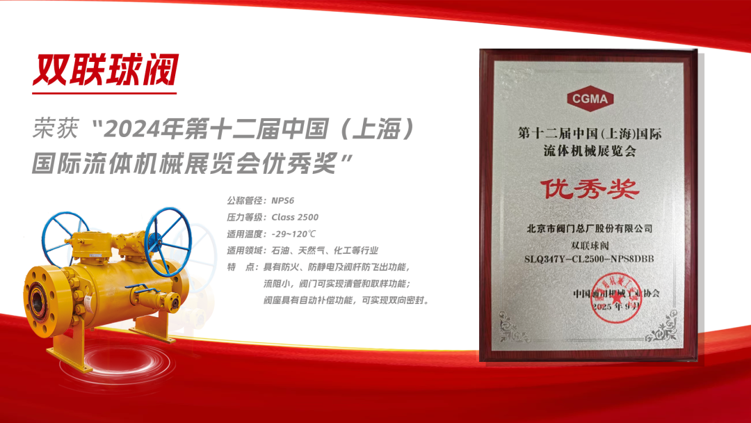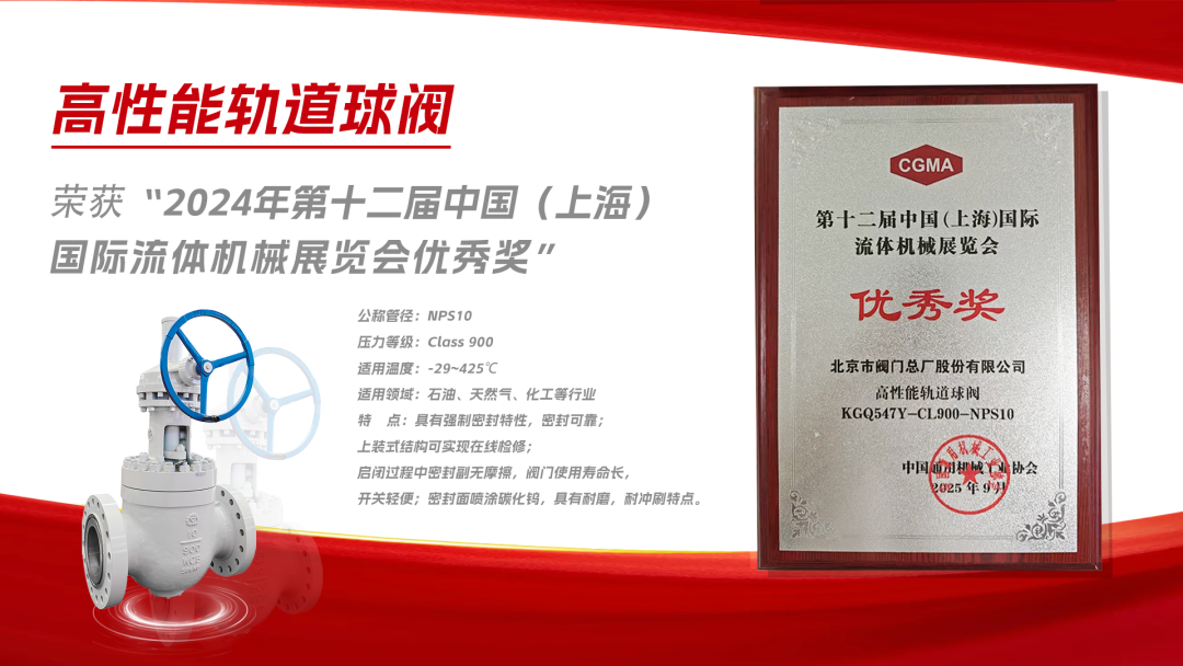 近日,在中国通用机械工业协会(以下简称“中通协”)第八届会员代表大会暨第六届中国国际流体机械产业高峰论坛上,北阀总厂股份凭借自主研发的创新产品“高性能镍基合金平板闸阀”斩获第十二届中国(上海)国际流体机械展览会产品金奖,同时公司产品高性能轨道球阀、双联球阀荣获优秀奖,为我国流体机械产业自主化发展再添亮眼成果。