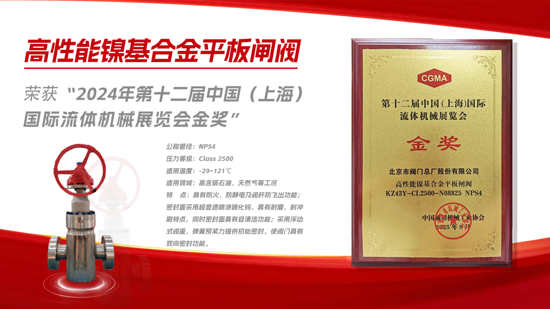 喜报| 北阀总厂股份高性能镍基合金平板闸阀荣获第十二届中国(上海)国际流体机械展览会产品金奖