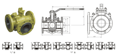 2、三通球芯分T形和L形,使用寿命长,流通能力大,阻力小。