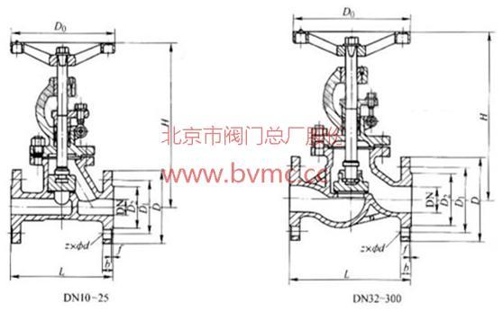 【J41Y 型PN25 钢制截止阀产品外形及结构尺寸】