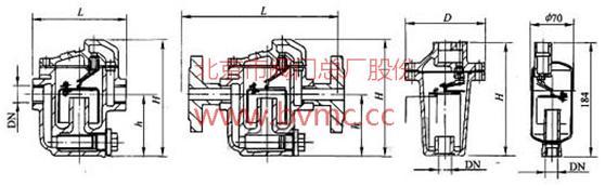 CS45H-16C、CS45H-16 型钟形浮子式蒸汽疏水阀主要外形及结构尺寸(mm) |